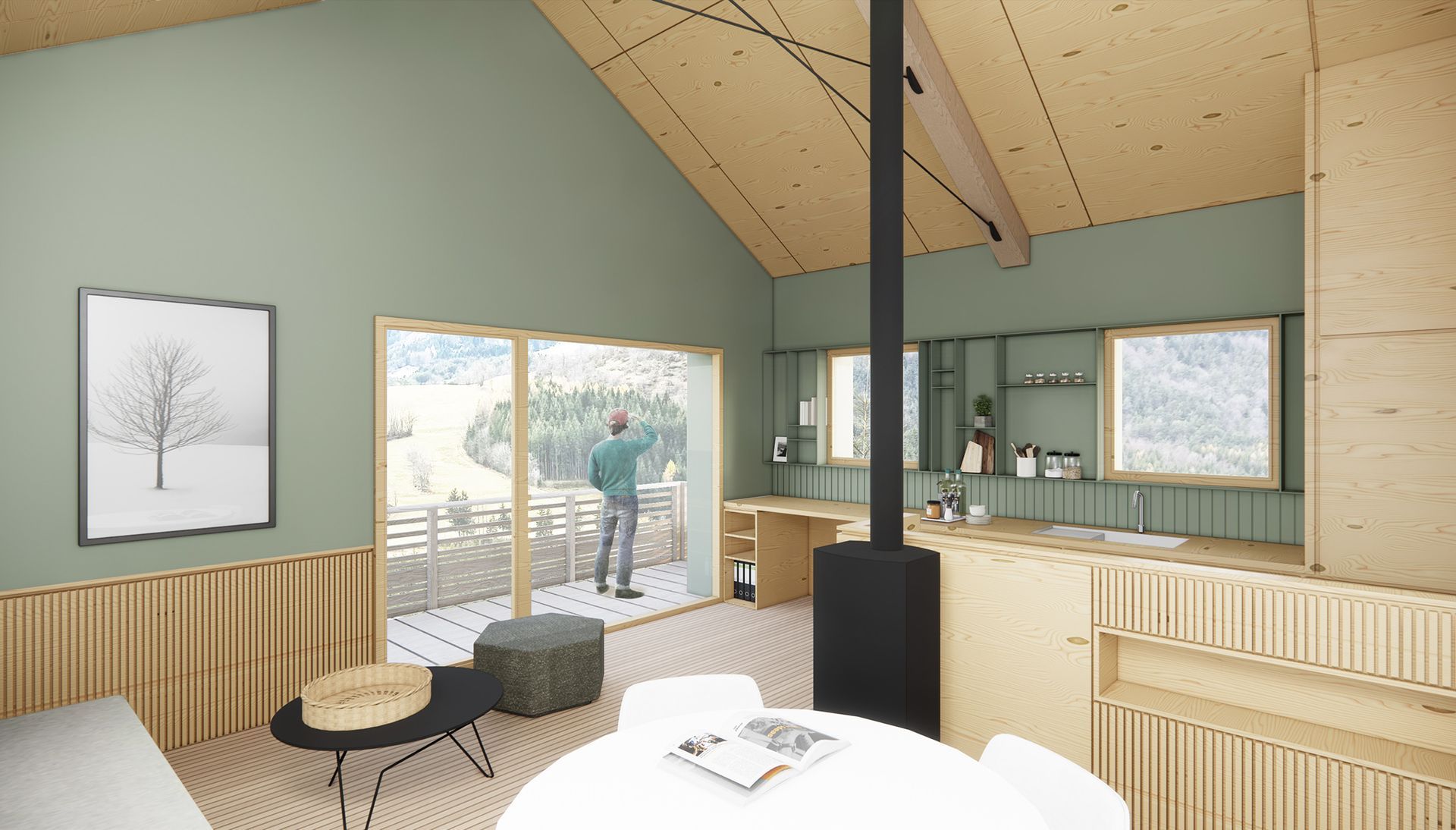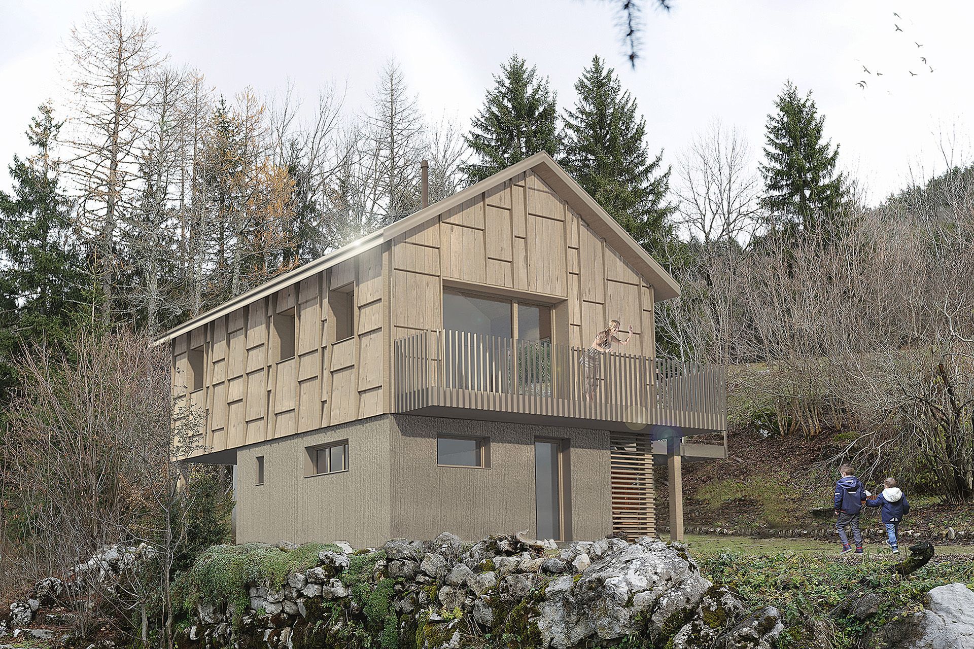 Situé sur les hauteurs du hameau du Chomeil à Gresse en Vercors, le chalet existant profite d’un emplacement privilégié, face au Grand Veymont. L’enjeu du projet était de transformer un habitat « léger » en une résidence principale tout en conservant l’orientation du bâti et la répartition des pièces.
