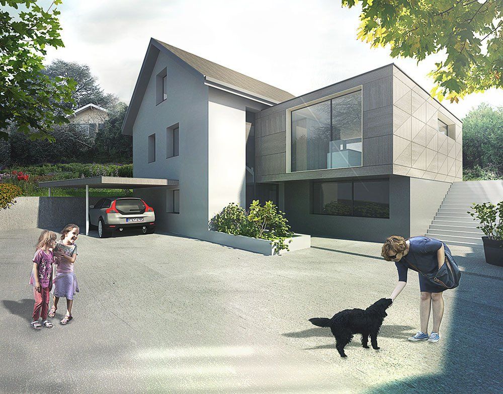 La construction des années 60 offre une solide assise et un bon potentiel de transformation pour un jeune couple qui souhaite investir les hauteurs de Lyon. L’extension projetée permet de mettre en lien la maison et son jardin, relation qui faisait défaut jusqu’à présent. La construction en ossature bois est apparue comme une évidence pour raccourcir les temps de construction en chantier mais aussi pour offrir un bon niveau d’isolation et la possibilité de s’ouvrir largement sur le jardin. Le bardage qui habille les façades de cette extension est réalisé en éléments triangulaires striés qui viennent capter la lumière de l’Ouest et donnent du relief à l’ensemble.